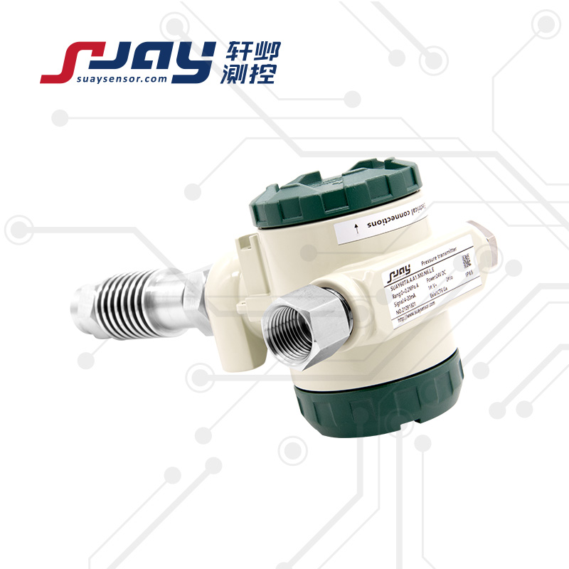 SUAY70 高温压力变送器采用耐高温的硅-蓝宝石技术的感压膜片作为核心,匹配特殊的温度补偿和片上线性修正技术,使其在宽泛的温区内有着良好 的综合性能。蓝宝石材料对温度变化极不敏感,在-40 至380℃的高温下,也有着ji佳的弹性力敏特性,不会产生疲劳、滞后、PN 节漂移等现象,并且抗辐射性能优异。耐磨损、抗疲劳的钛合金感压膜片,使该系列产品不仅可以承受高温,更兼具良好的耐用性、抗冲击性。利用β相高温力敏材料与合理的结构设计,可将温度扩展至 450-850℃。该系列压力传感器测温范围宽,压力量程覆盖范围广,综合精度高且稳定性好,测量介质兼容性好,广泛应用航空航天、航海及造船、石油化工、电厂电站、油田压力、食品、医药、环保、科研院所等针对高温流体的精准测量,是极佳的高温压力测量解决方案。